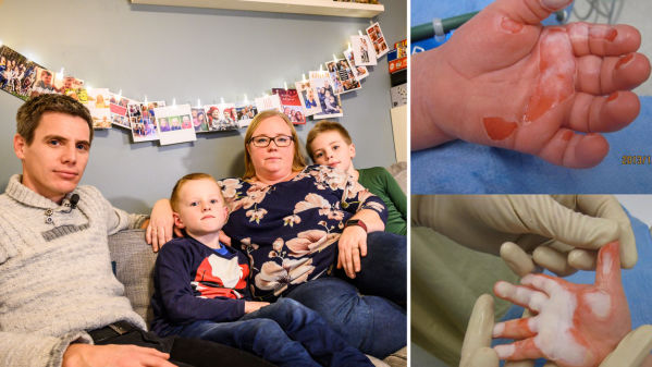 Oskar la hendene på en peisdør da han var 1 år og fikk store kontaktskader. Les historien han på linken nedenfor.